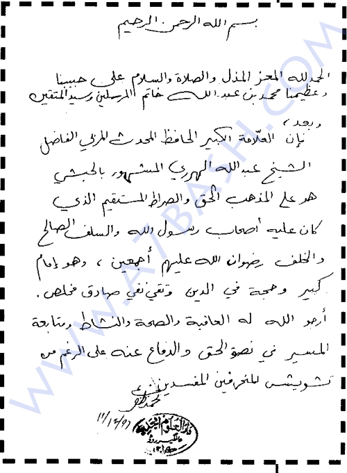 | القسم : | شهادات العلماء في الهرري |