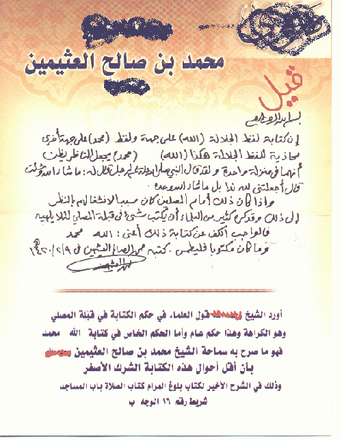 SunnaOnline | سنة اون لاين مكتبة الفرق المنحرفة الوهابية أدعياء السلفية الوهابي إبن عثيمين يحرم كتابة اسم النبي متلازمًا مع اسم الله تعالى